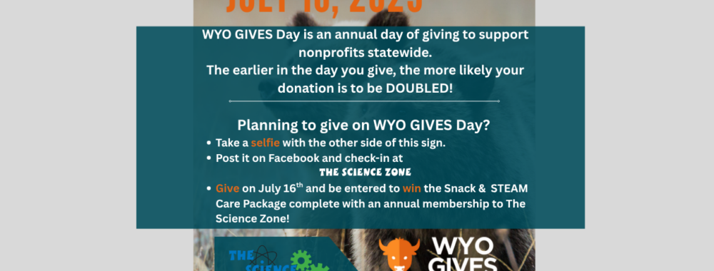 Support The Science Zone this WyoGives Day July 16th in the morning and hopefully YOUR donation will be matched, and DOUBLED!